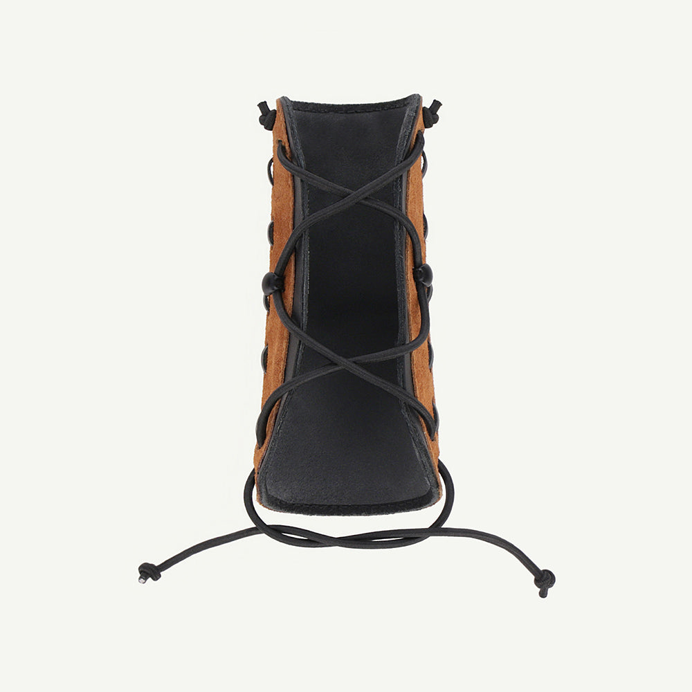 The armguard Archer from the Premium collection is an absolute highlight for all those who are looking for a soft companion. The high-quality and REACH-compliant suede (cow) and plain leather (buffalo) is processed so that it becomes a supple combination that adapts directly to your forearm. The Archer armguard is simple and easy to put on: Take one of the flexible rubber cords and hook it into the opposite hook. Do the same with the other rubber cord. The rubber cords are too long? No problem. Hook the rubber cord so that it fits perfectly. Then redo the knot on the bottom of the armguard and cut off the rest. Whether you are a beginner or an experienced archer, the Archer armguard is perfect for everyone.