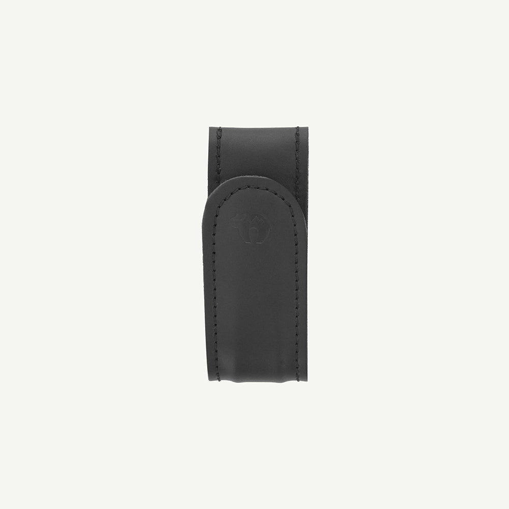 Having your hands free can often be a great advantage. The Belt Bowhook from the Traditional collection allows you to do just that. Whether you are putting on something, writing down or putting away your arrows, the Belt Bowhook holds your bow simply and securely. The push button allows you to easily attach the Belt Bowhookto your belt. Our Belt Bowhook was made of buffalo (plain leather) and it shines in a classic black.