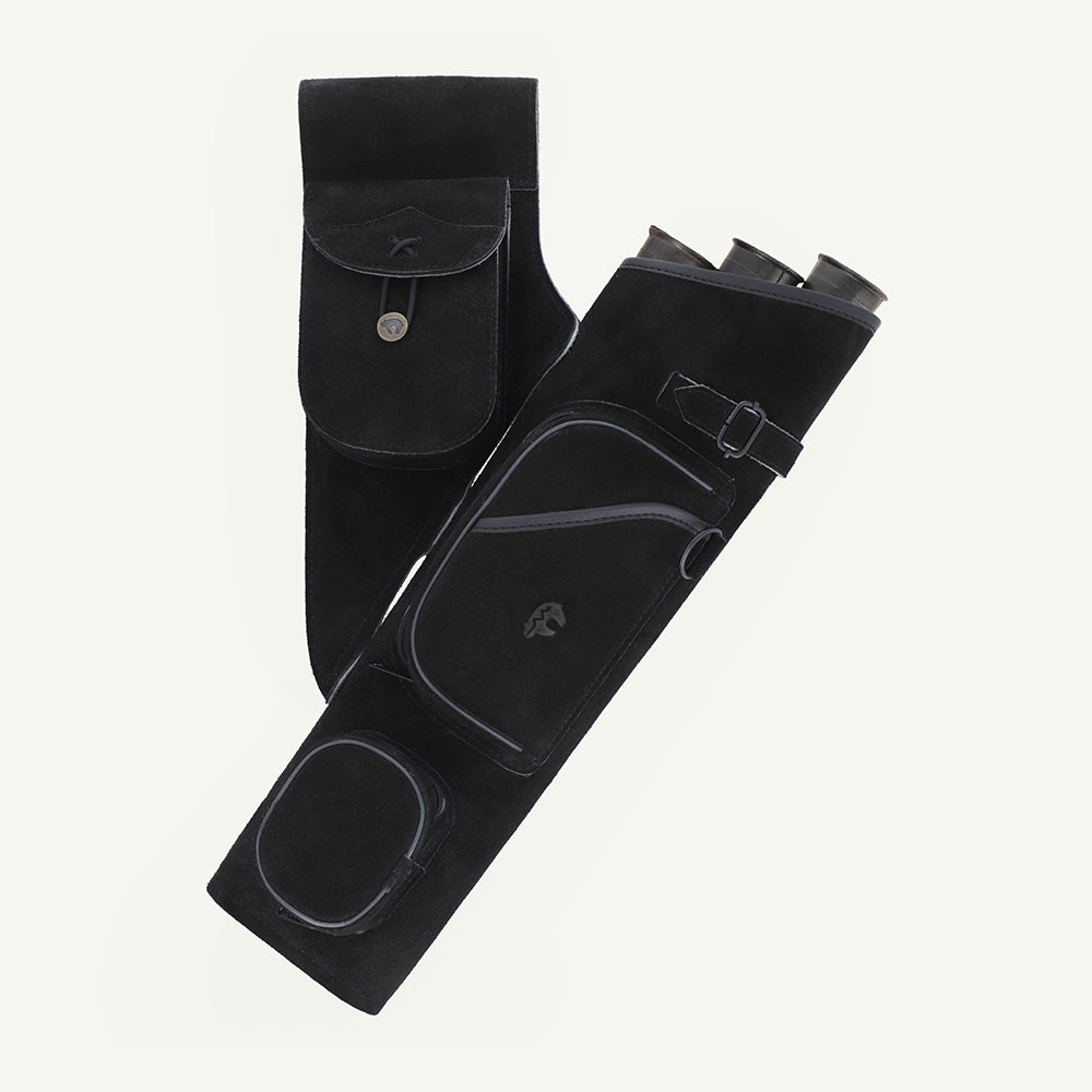 The Side Quiver Mountain from the Premium collection is made of high quality and REACH-compliant cow leather suede and many functional details to an exciting quiver. On the front of the quiver, you will find three different pockets, which offer you many storage options for any equipment. Whether archery glove, cell phone or keys - everything finds its place. A total of three separate arrow tubes allows you to hold all your arrows. The side quiver Mountain can be easily attached to the belt by a cord. For right-handed or left-handed archers, there is a separate version in each case, so that the quiver fits perfectly including its pockets. Whether beginner or experienced archer: The side quiver Mountain is ideally suited for all.