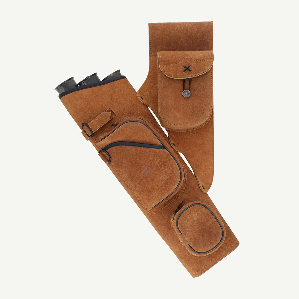 The Side Quiver Mountain from the Premium collection is made of high quality and REACH-compliant cow leather suede and many functional details to an exciting quiver. On the front of the quiver, you will find three different pockets, which offer you many storage options for any equipment. Whether archery glove, cell phone or keys - everything finds its place. A total of three separate arrow tubes allows you to hold all your arrows. The side quiver Mountain can be easily attached to the belt by a cord. For right-handed or left-handed archers, there is a separate version in each case, so that the quiver fits perfectly including its pockets. Whether beginner or experienced archer: The side quiver Mountain is ideally suited for all.