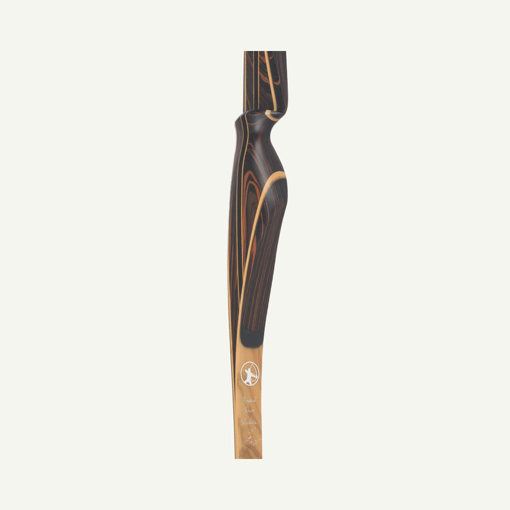 The riser of the Dakota is made from high-quality smoked oak and is complemented by an overlay of black glass and dark smoked oak. To maximize the bow’s performance and offer an exceptionally comfortable shooting experience, a layer of carbon has been integrated beneath the elegant olive veneer. This innovation ensures that the Dakota Longbow provides exceptional performance and a pleasant shooting experience, even with a draw length of up to 30 inches.