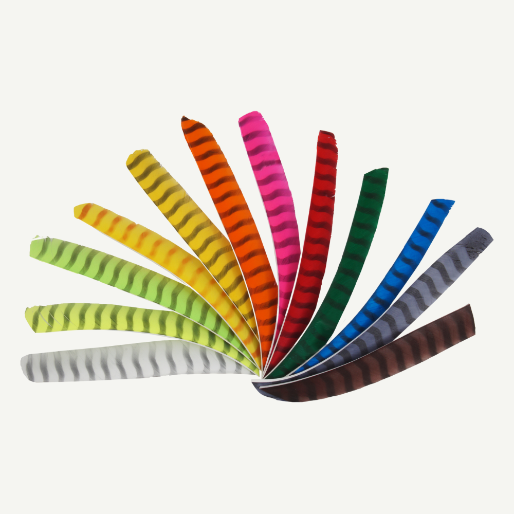 Our feathers with the barred color patterns give your arrow a special „classic“ look and are used by many archers around the world as a way to connect to the history of archery with the classic look and feel barred feathers provide.