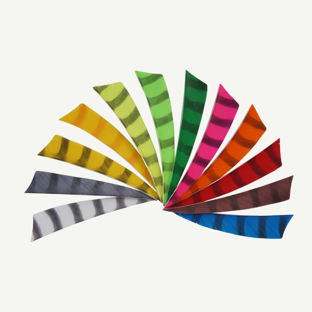 Our feathers with the barred color patterns give your arrow a special „classic“ look and are used by many archers around the world as a way to connect to the history of archery with the classic look and feel barred feathers provide.