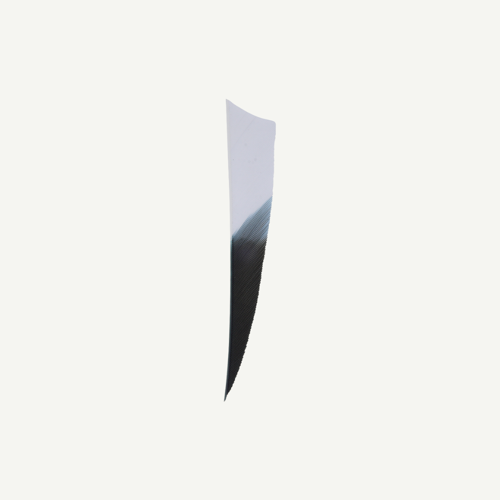 Feathers in the length of 4 inches are normally used for arrows that will be shot from more powerful bows. They stabilize arrows quickly and reliably. We have used a flatter profile in our Shield shape to perfectly optimize stabilization and arrow speed.