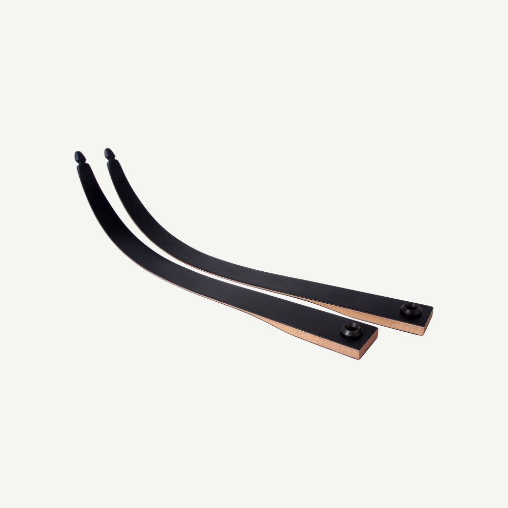 The powerful limbs can be shot with any standard high-performance tendon. We used black fiberglass laminate for these Hero limbs so they match perfectly with the smoky dark middle parts. For the best perfomance from the Hero limbs on your bow, we recommend our Henry Bodnik Whisper Strings. In addition to the added performance, with our Whisper Strings your bows will be "whisper quiet"!