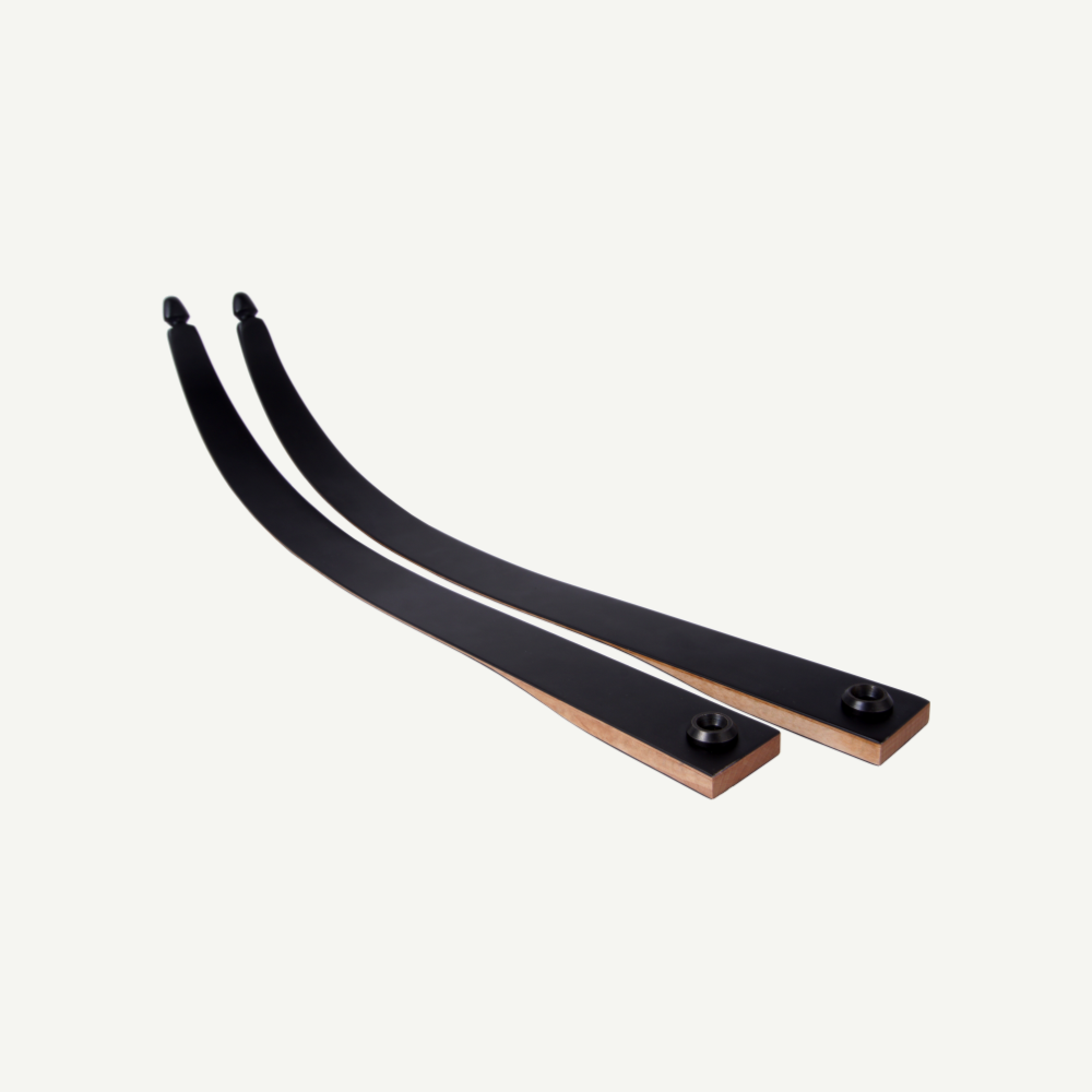 The powerful limbs can be shot with any standard high-performance tendon. We used black fiberglass laminate for these Hero limbs so they match perfectly with the smoky dark middle parts. For the best perfomance from the Hero limbs on your bow, we recommend our Henry Bodnik Whisper Strings. In addition to the added performance, with our Whisper Strings your bows will be "whisper quiet"!